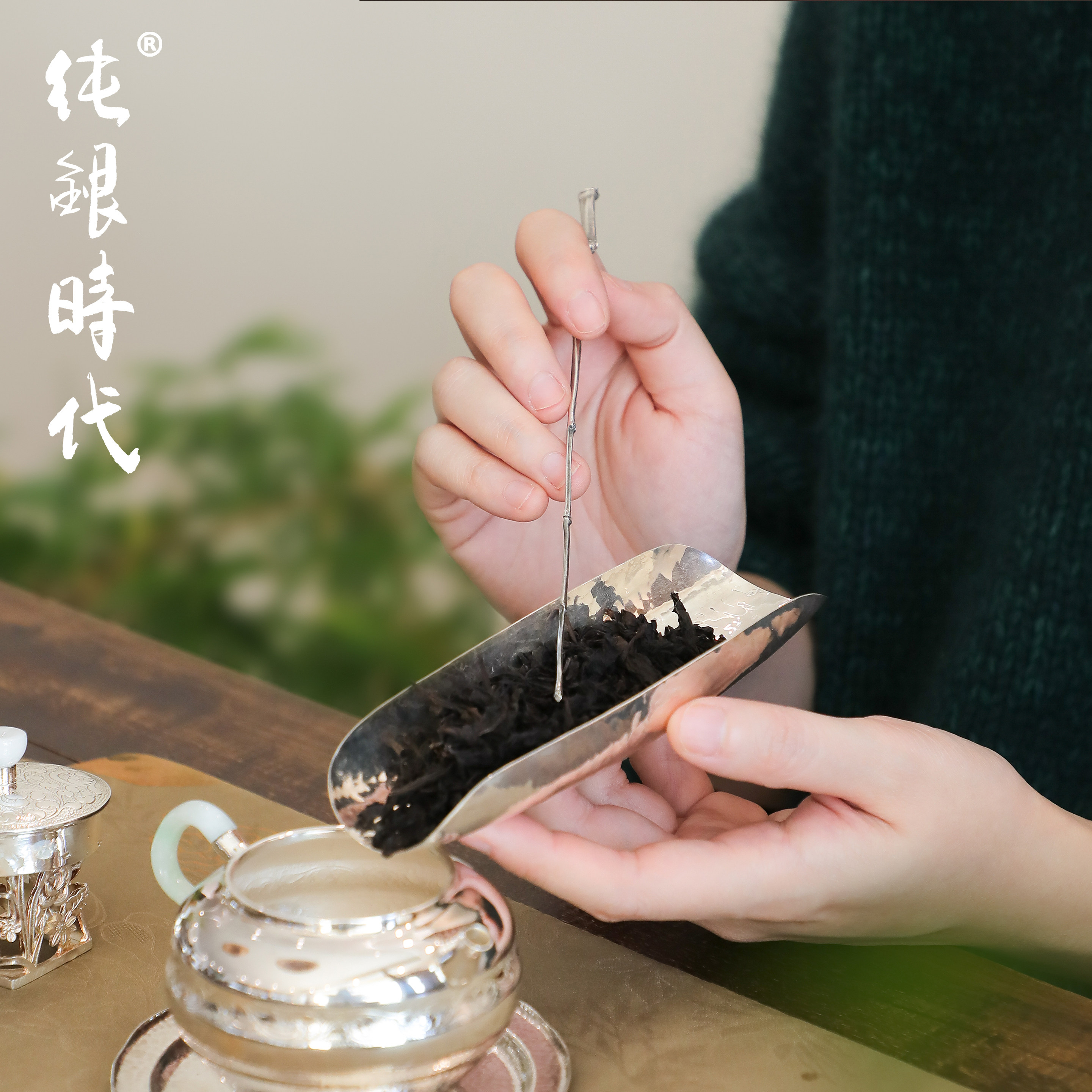 纯银时代 竹枝茶针茶拨纯银999纯手工茶道零配茶席美物雅致茶器