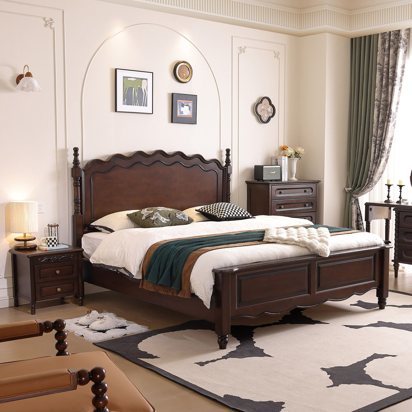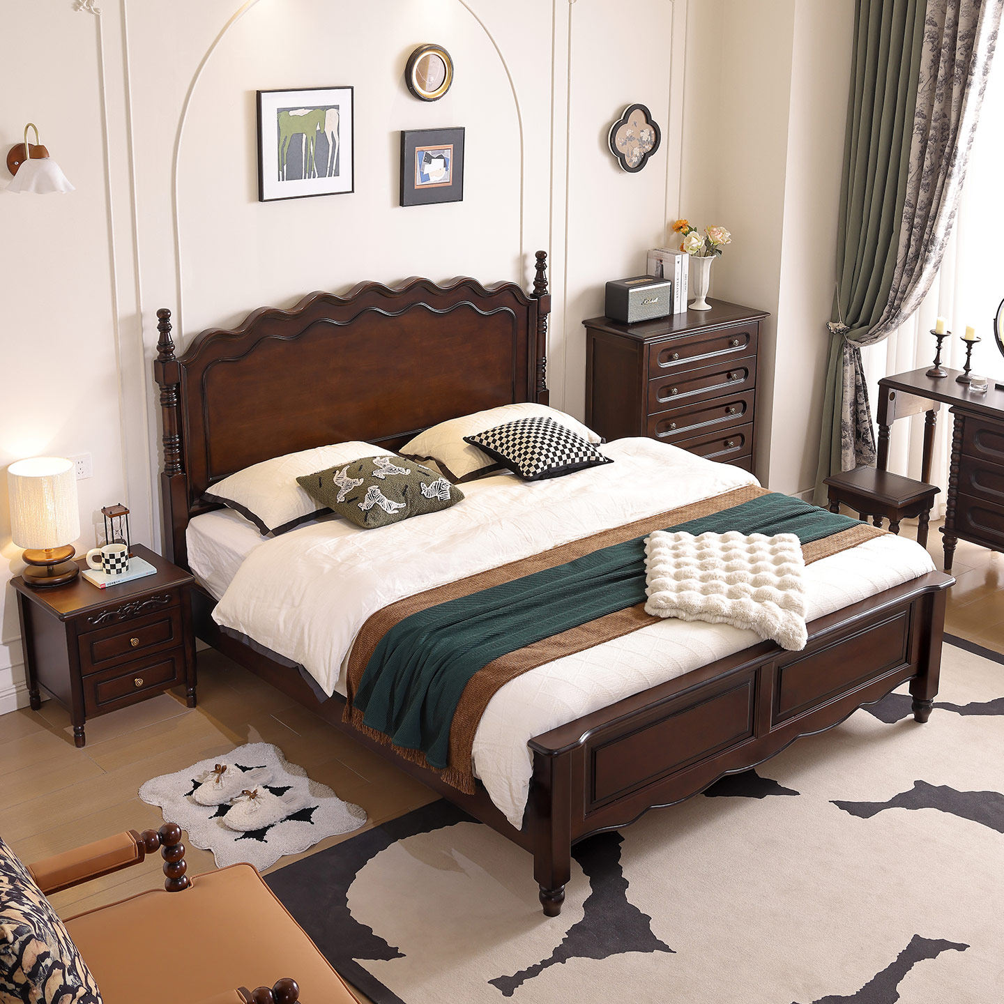 政府补贴美式复古全实木床1.8m主卧双人床中古风全实木床1.5m床