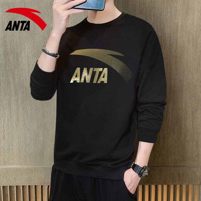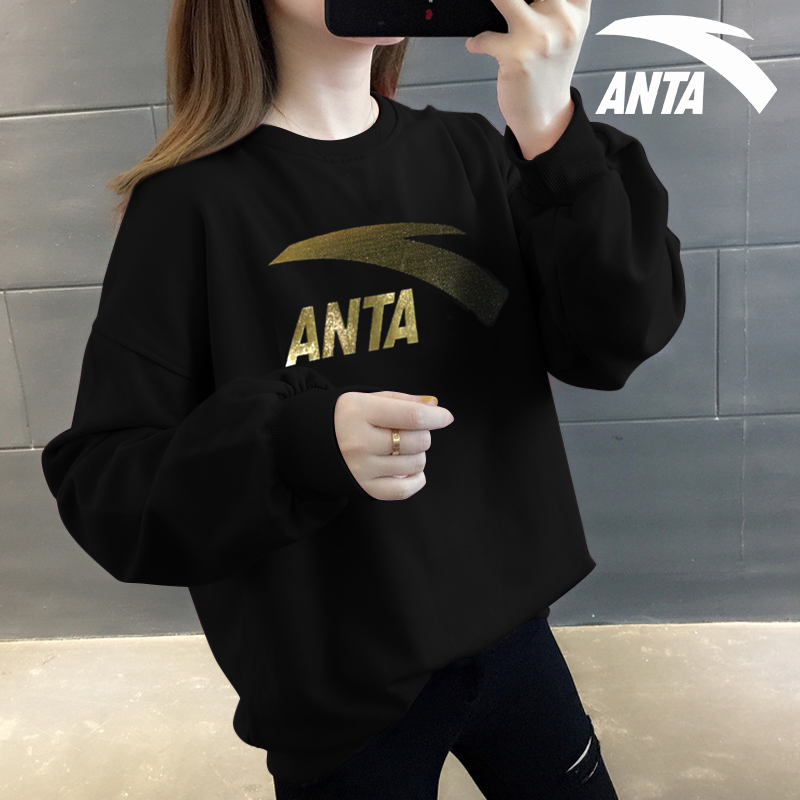 安踏卫衣女情侣长袖男白色春季新款圆领休闲套头衫透气宽松运动服