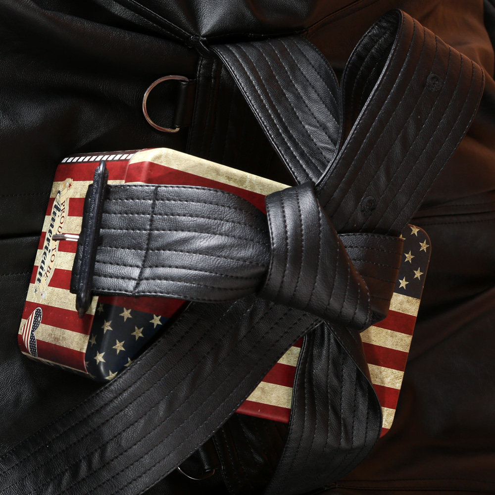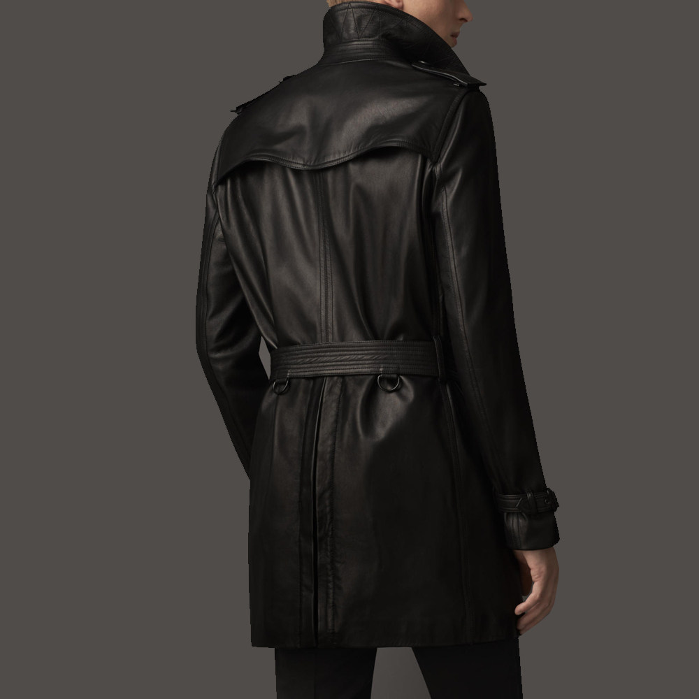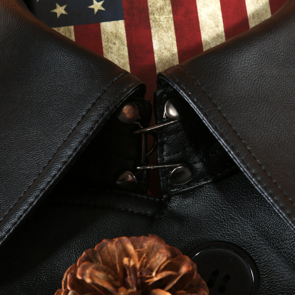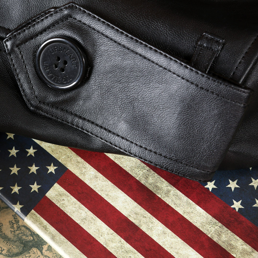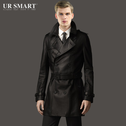 URSMART中长款双排扣男士皮风衣欧美简约帅气皮风衣正品风衣