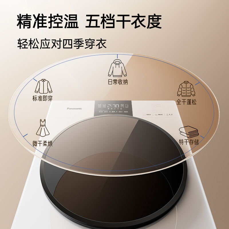 [超薄全嵌]松下白月光5.0烘干机10kg家用热泵变频除毛除菌干衣机