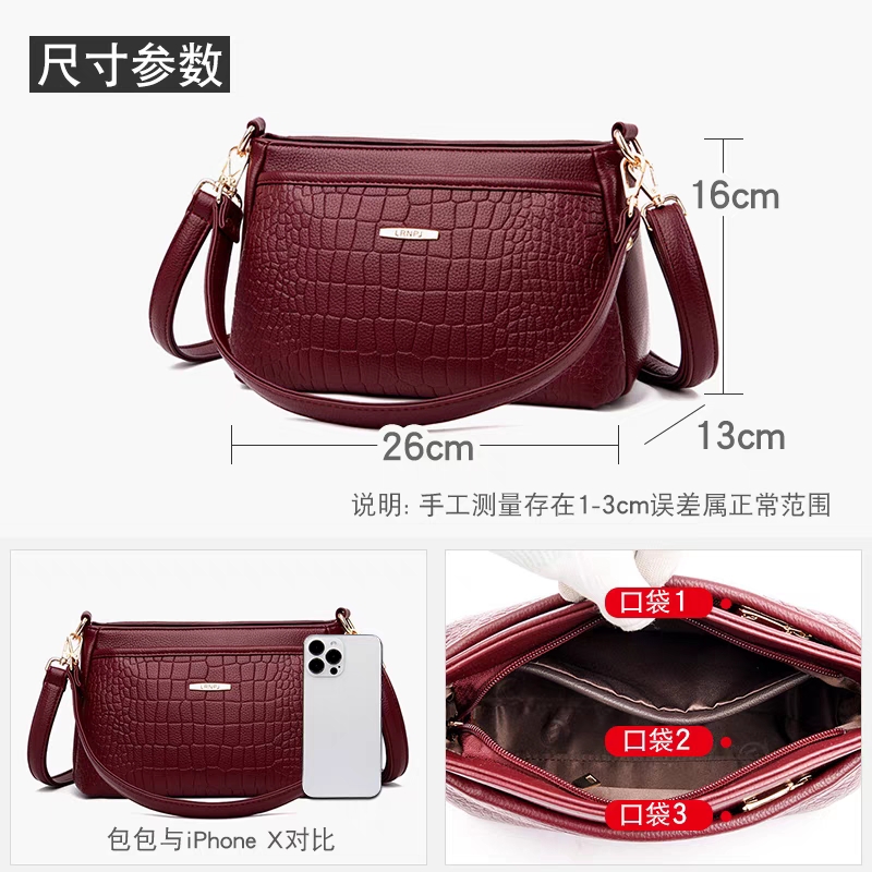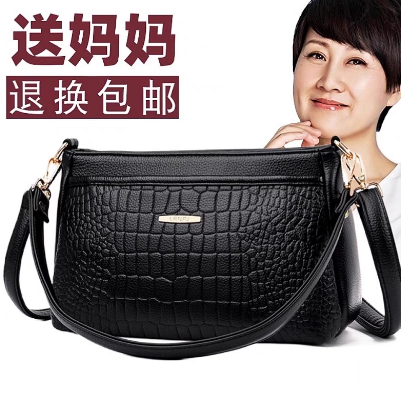 斜挎包中年女妈妈单肩婆婆软皮