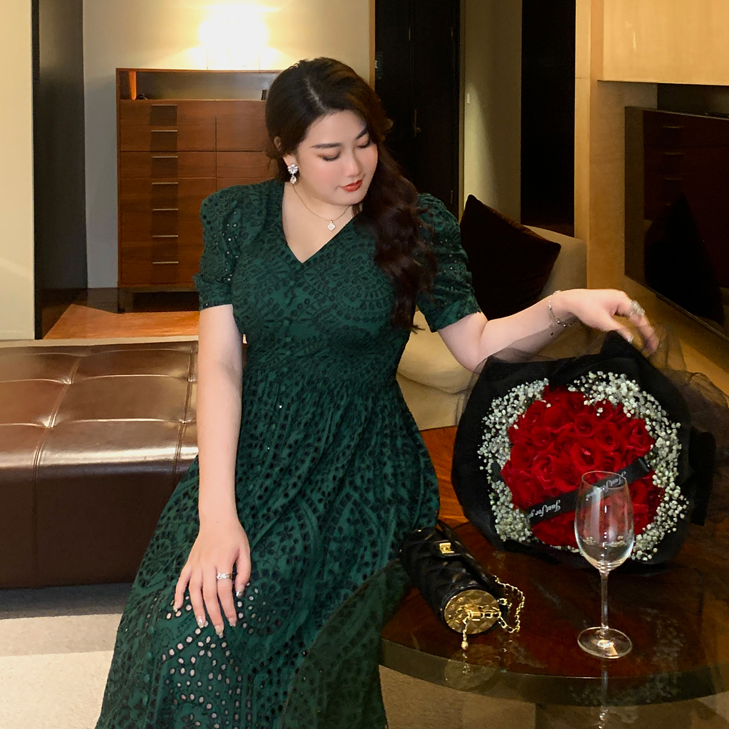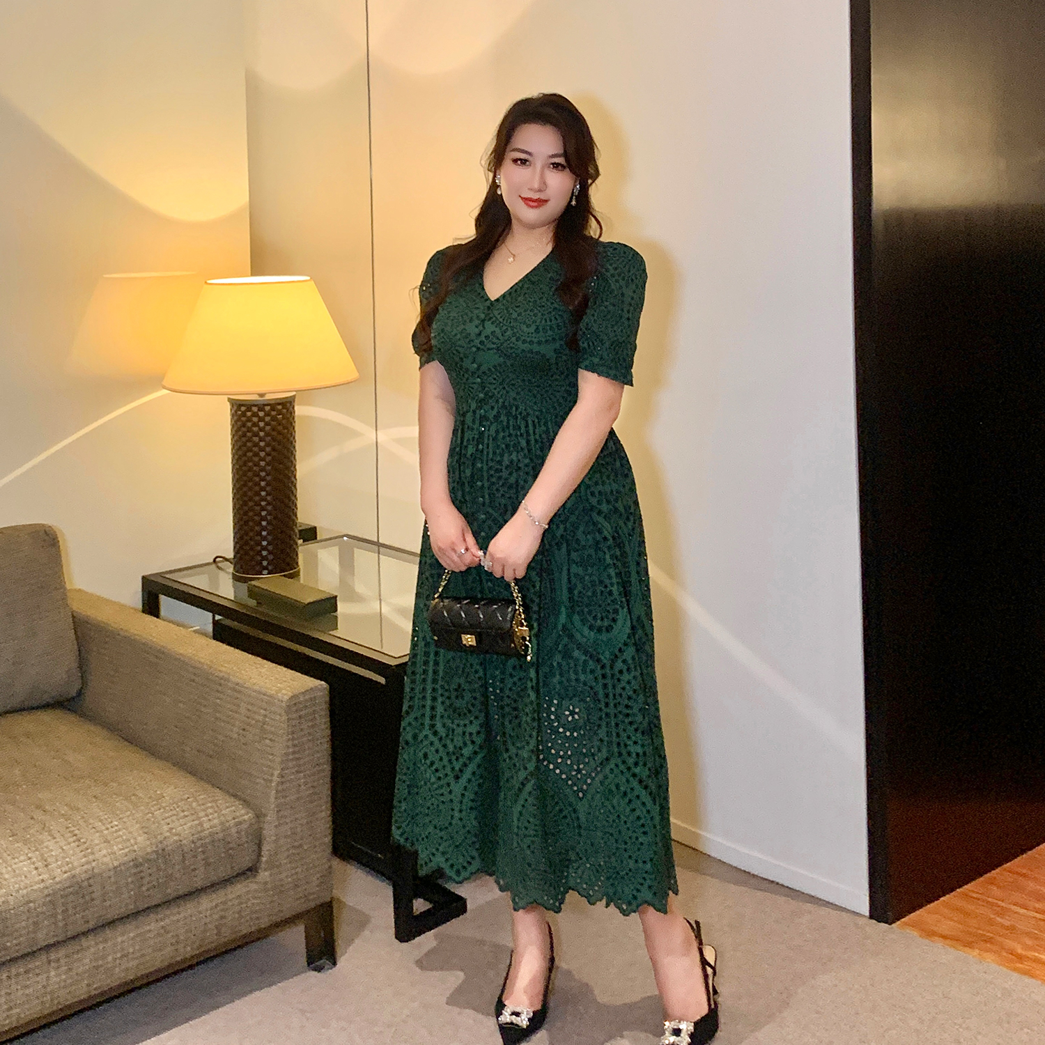 GLEC大码女装夏装2025年新款高端重工刺绣时尚优雅胖mm显瘦连衣裙