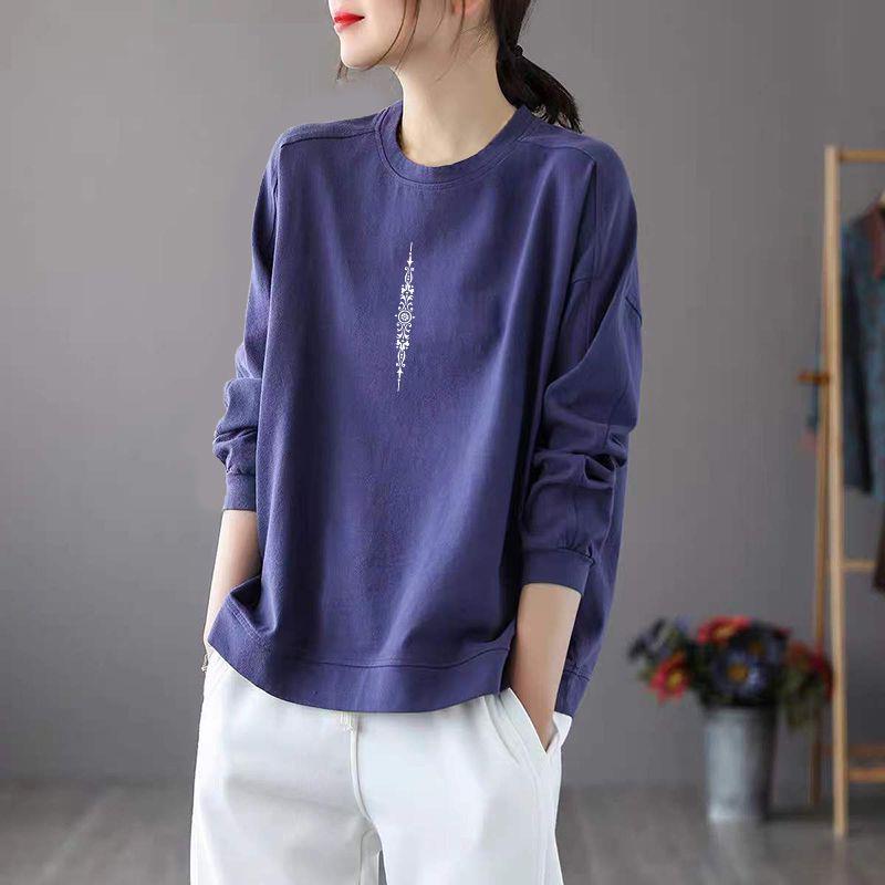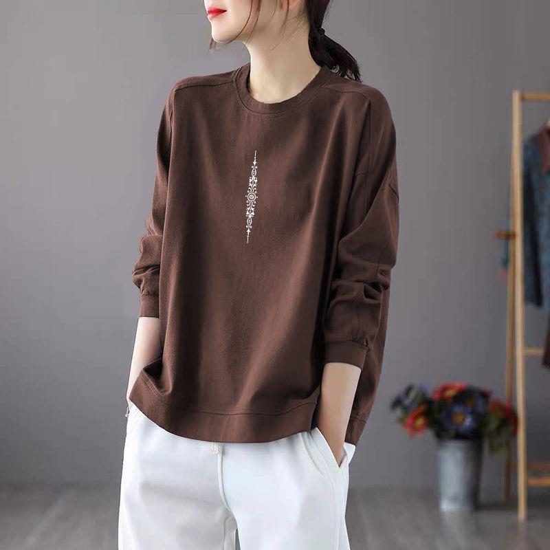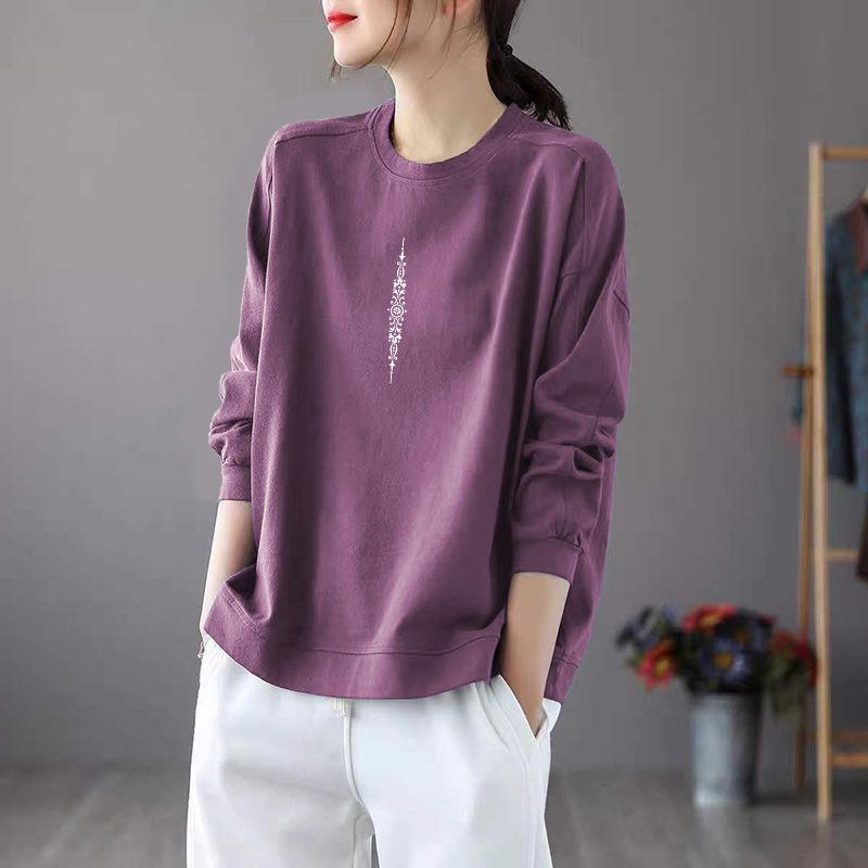 圆领长袖t恤女2025秋新款印花休闲宽松大码胖mm内搭打底衫上1009z