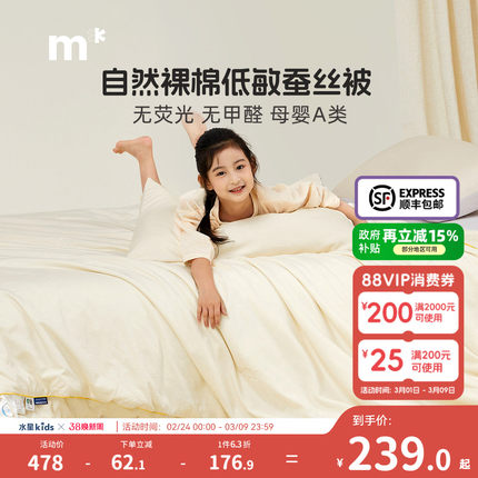 水星儿童蚕丝被四季被全棉抗菌