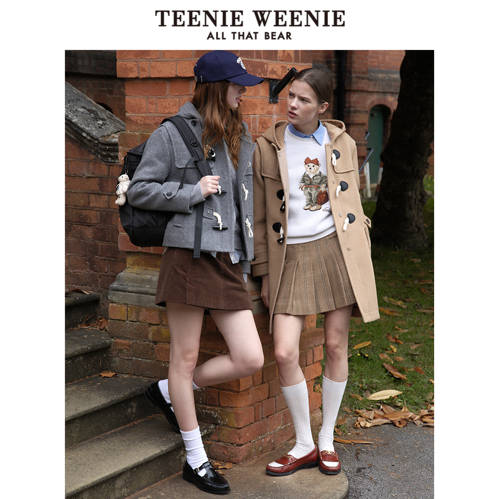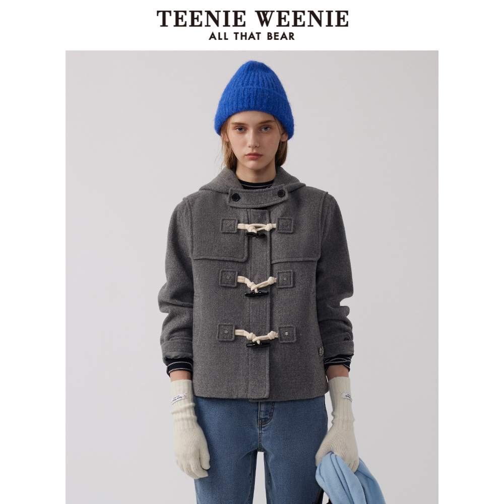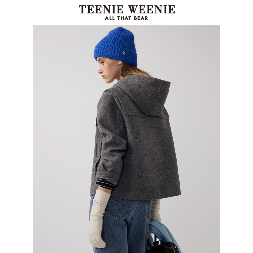 TeenieWeenie小熊奥莱女装牛角扣短款毛呢大衣绵羊毛混纺外套女
