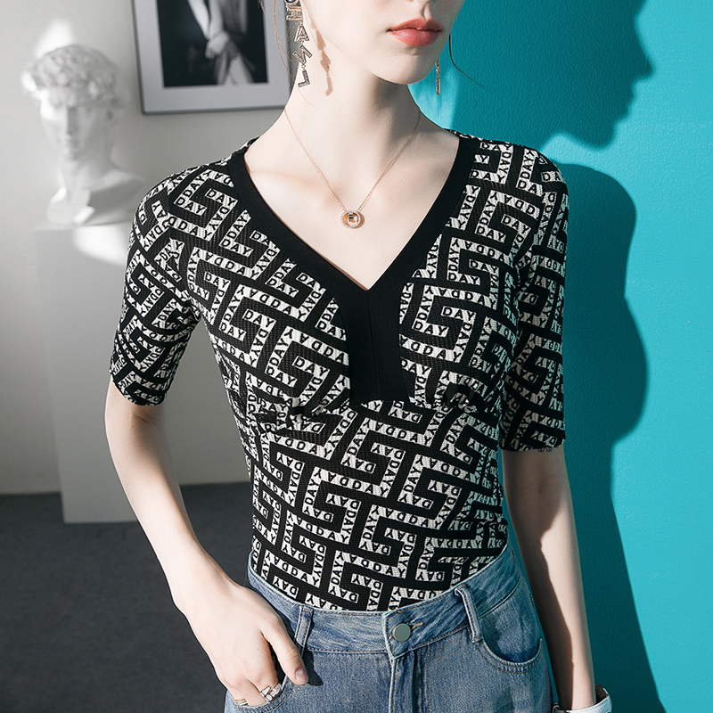 2025秋季新款格子印花蕾丝衫打底衫女五分袖修身春款中袖洋气小衫