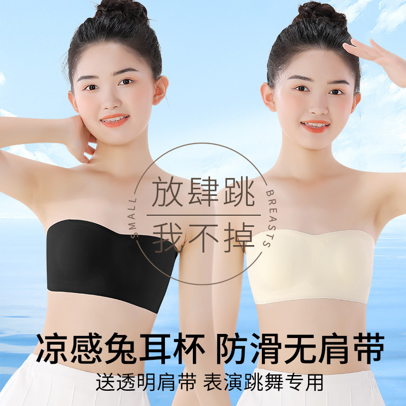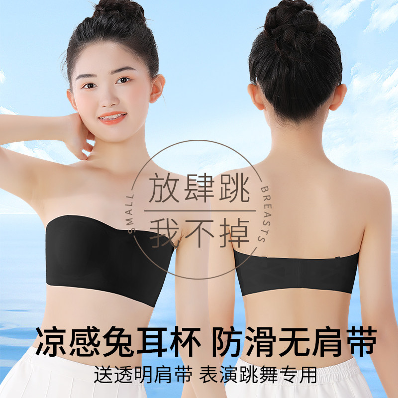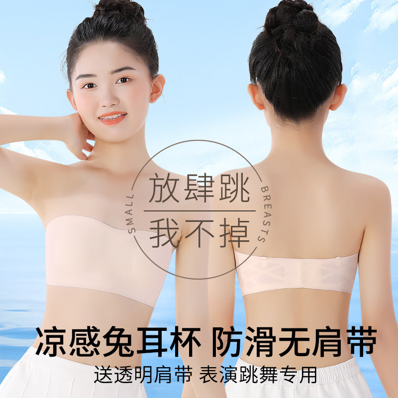 无肩带内衣女童舞蹈专用抹胸防走光内搭学生文胸隐形防滑儿童裹胸