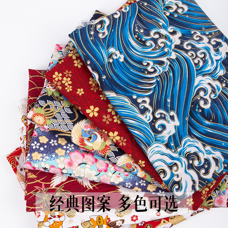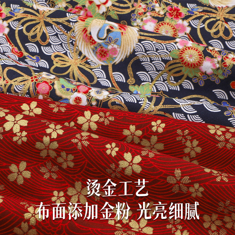 和风烫金布料布头全棉印花diy手工衣服桌布棉布纯棉面料清仓处理