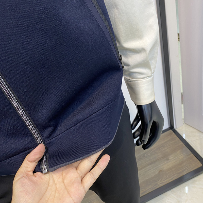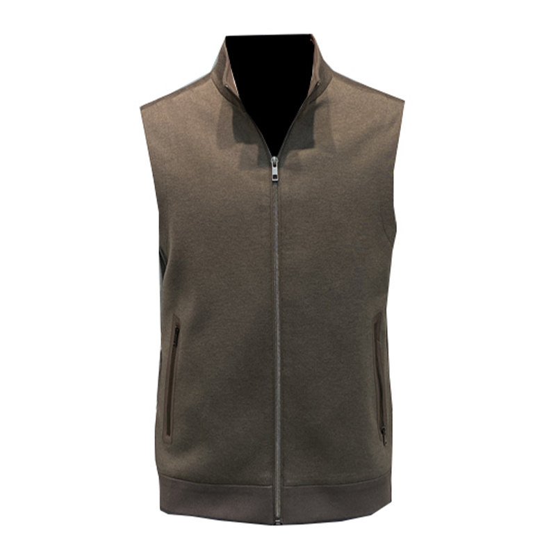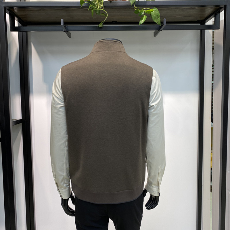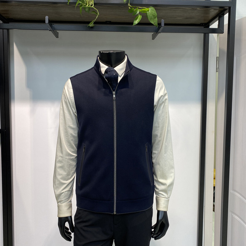 春季新品男士绵羊毛混纺马甲上衣商务休闲拉链背心外套领佐诺依