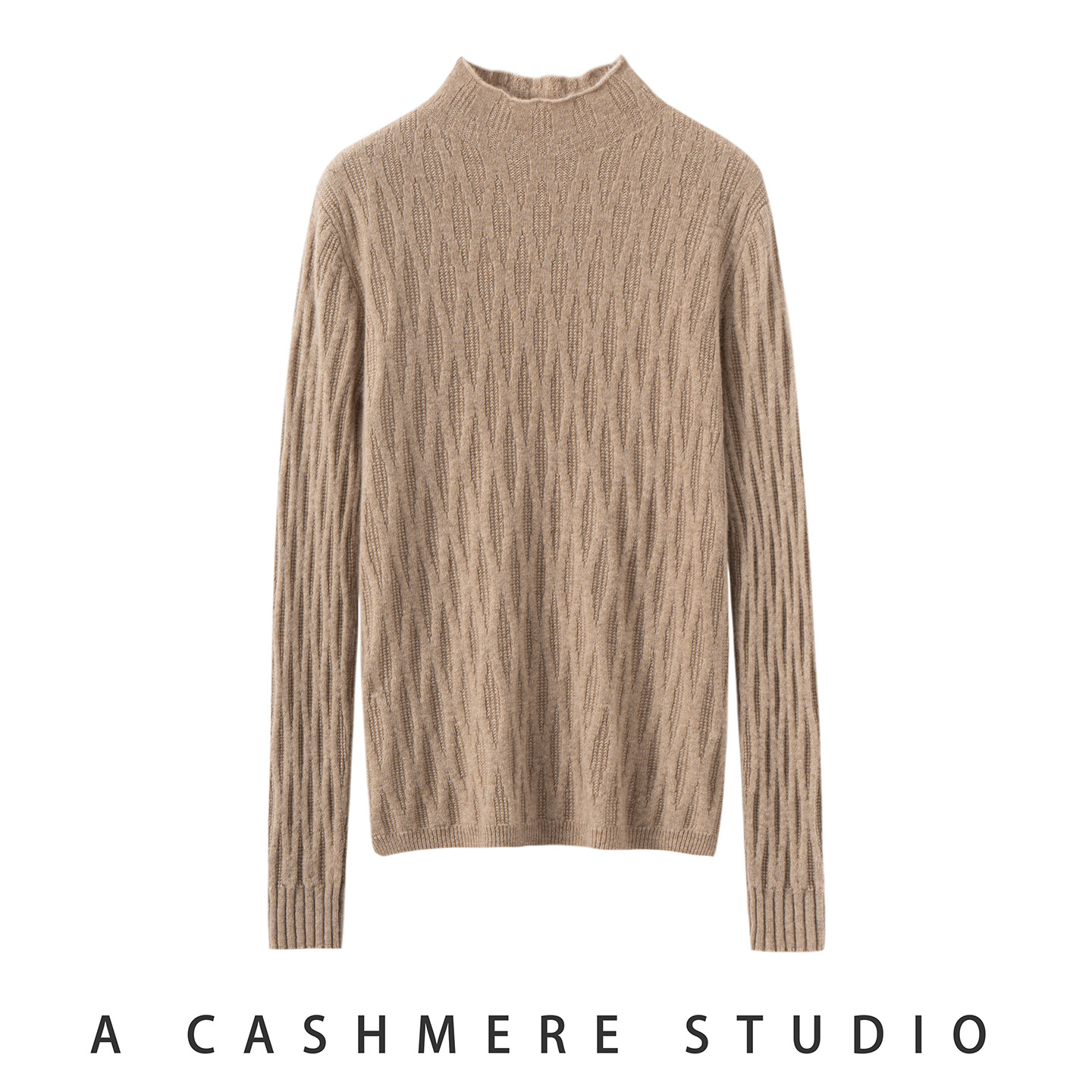 100%纯山羊绒衫女半高领毛衣秋冬新款修身针织打底衫内搭保暖上衣