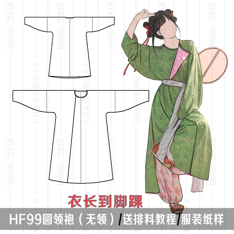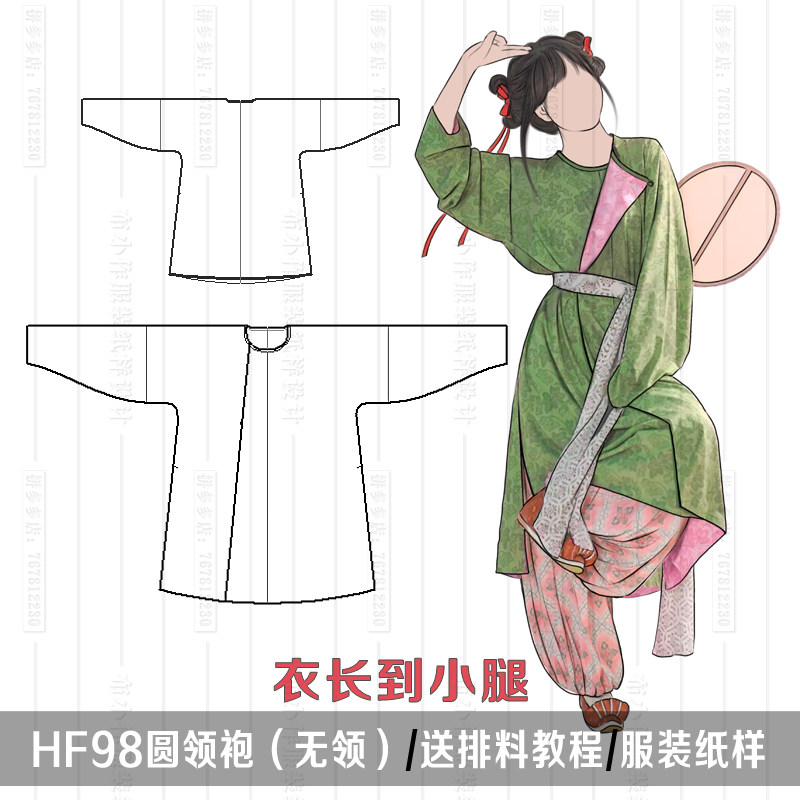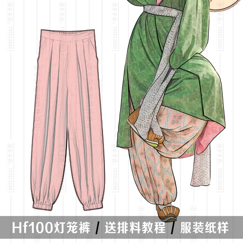 1:1实物纸样 唐弓袋袖圆领 灯笼裤 服装纸样 汉伊人手工diy松紧腰