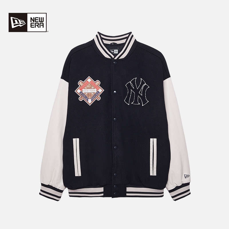 New Era纽亦华秋冬新款MLB梭织夹克外套绣章羊毛美式风棒球服夹棉