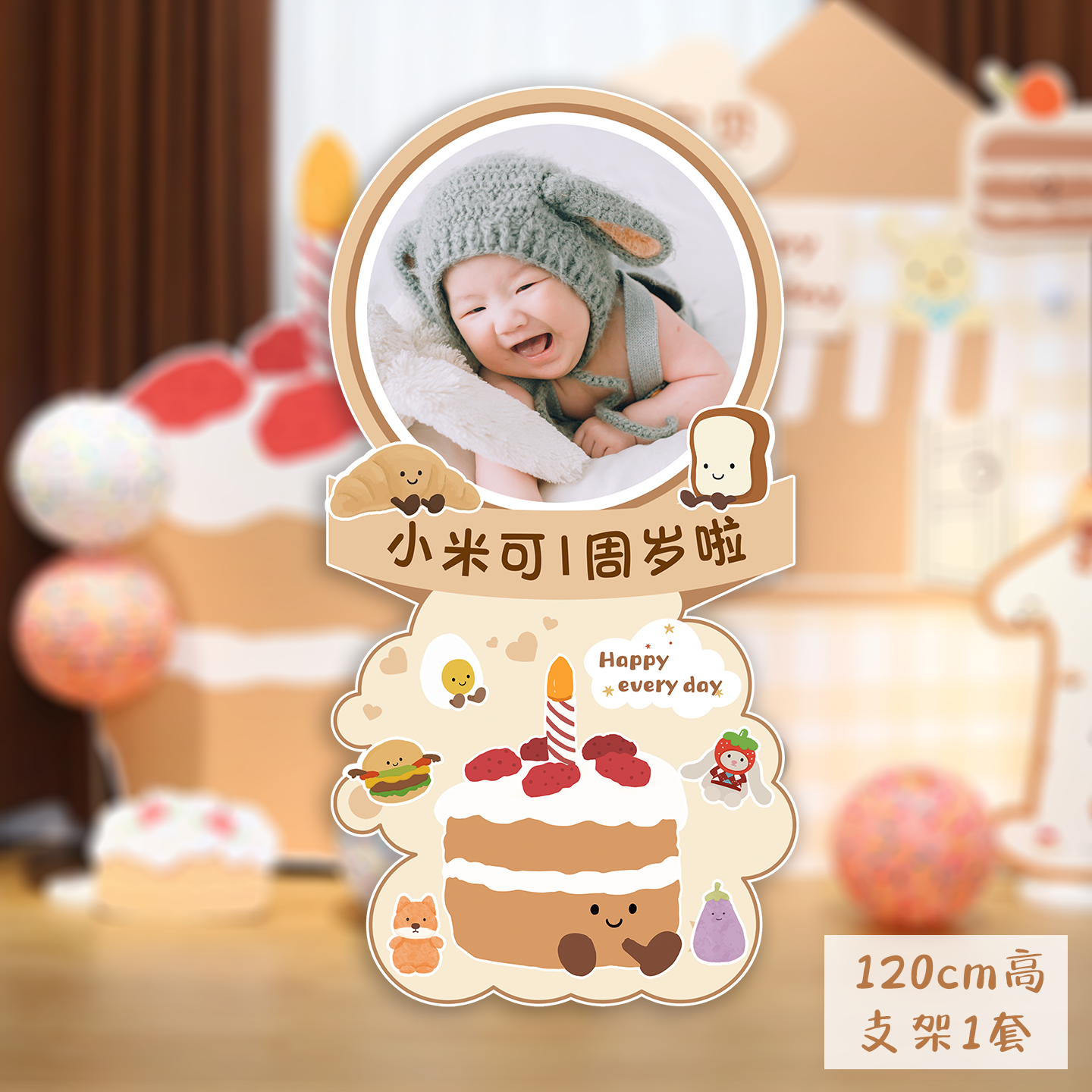 森系动物指示牌照片定制奶油小熊蛋糕主题宝宝一周岁百天路引立牌
