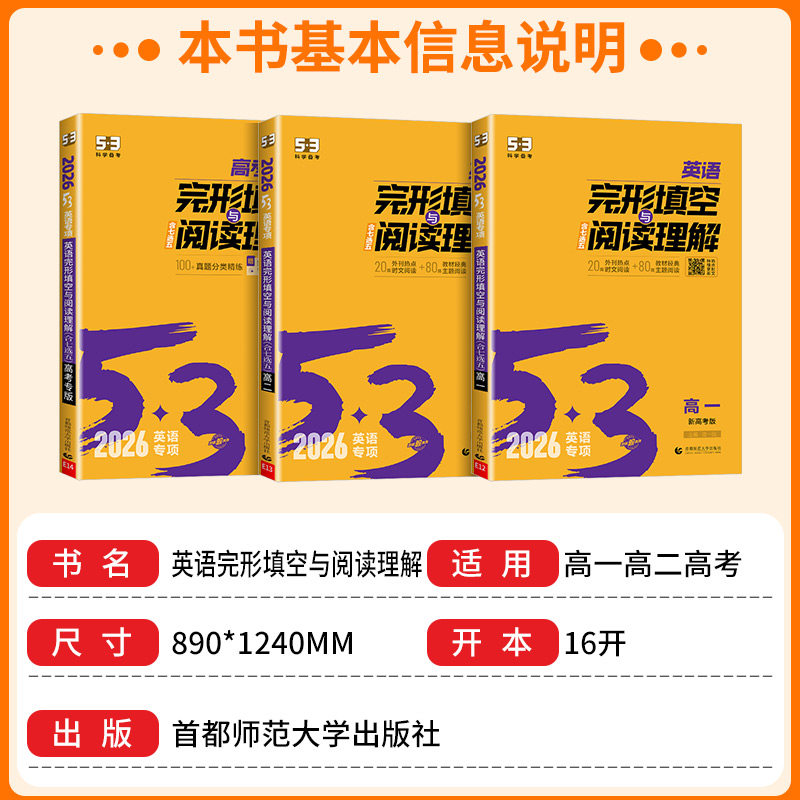 2026版53英语高中英语阅读理解与完形填空新高考地区高中高一高二高考适用5年高考3年模拟完形与阅读英语复习正版曲一线官方正品