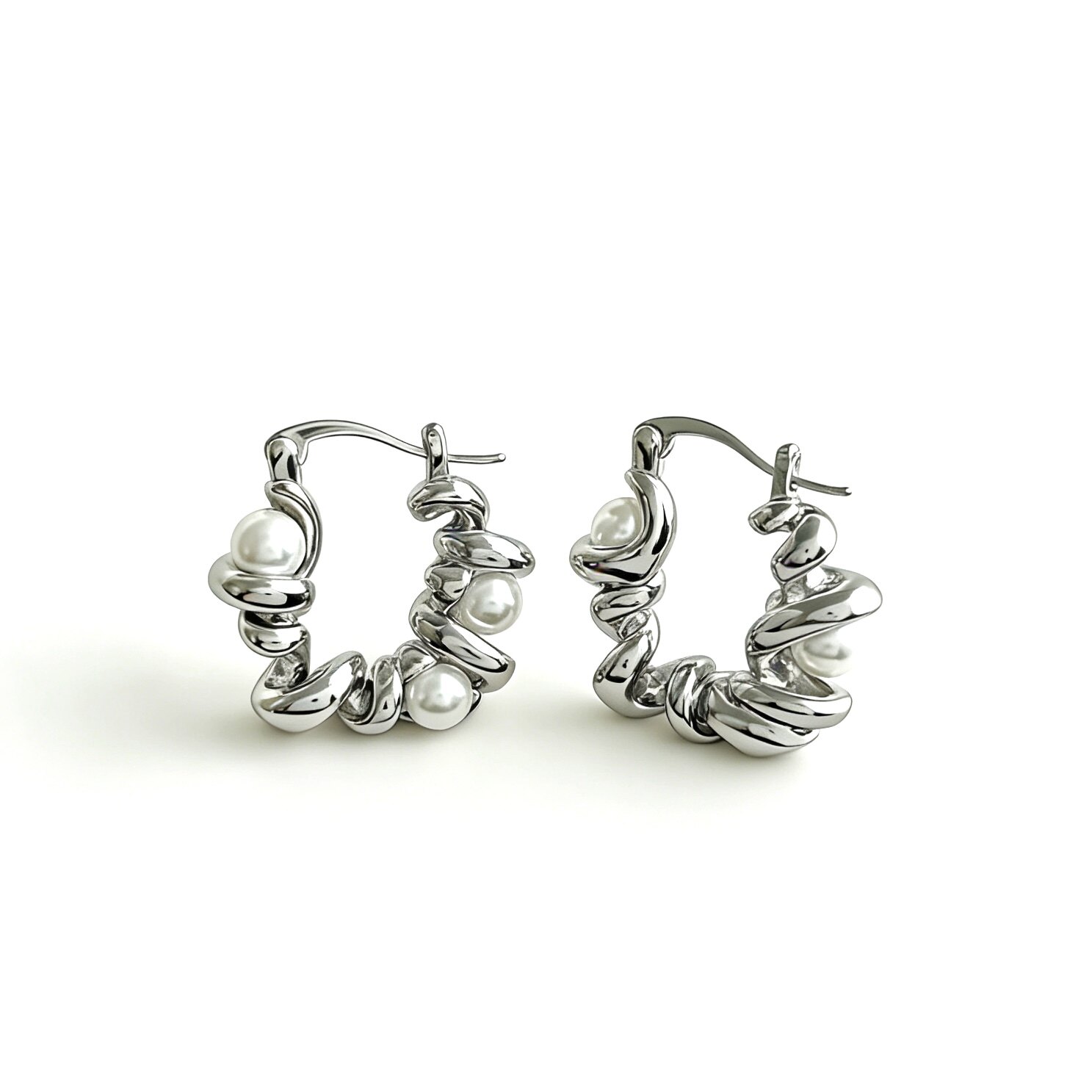 FataViamS925银麻花缠绕扭结珍珠轻奢小众高级感耳环耳饰耳圈女
