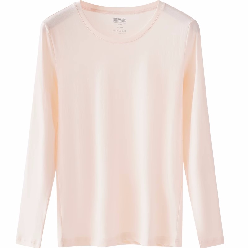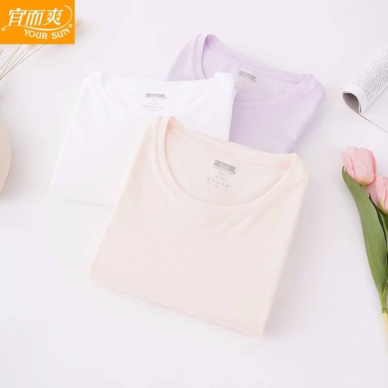 宜而爽女士超薄款纯棉圆领长袖上衣精致棉全棉夏季薄款打底衫睡衣