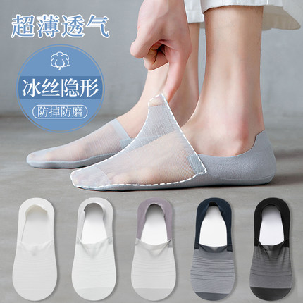 男士袜子夏季薄款船袜夏天防臭吸汗棉袜冰丝防滑不掉跟浅口隐形袜