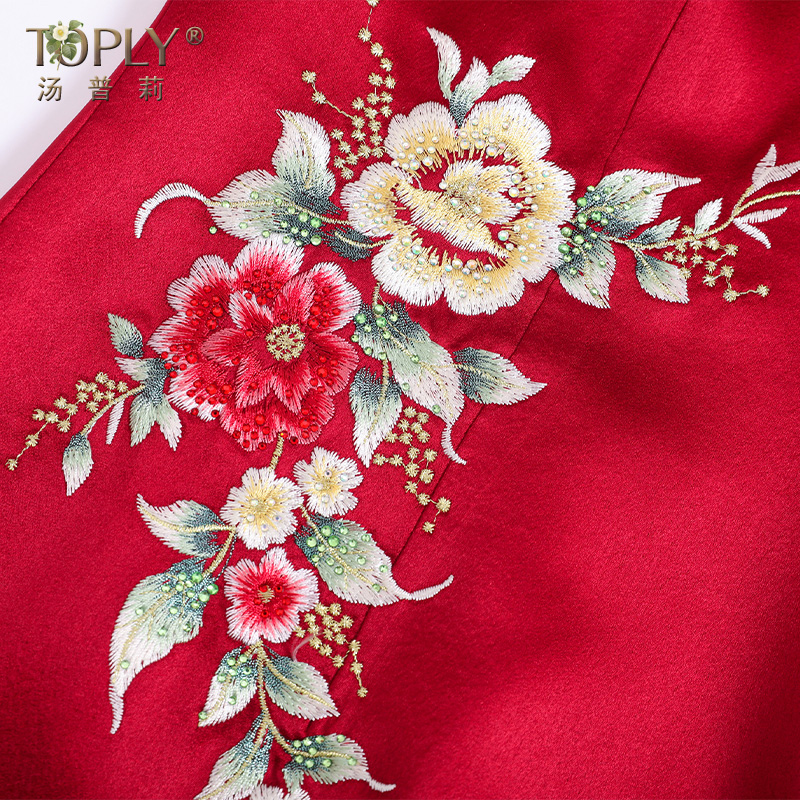 婚礼妈妈礼服中长袖气质旗袍裙修身显瘦轻奢高端绣花连衣裙端庄