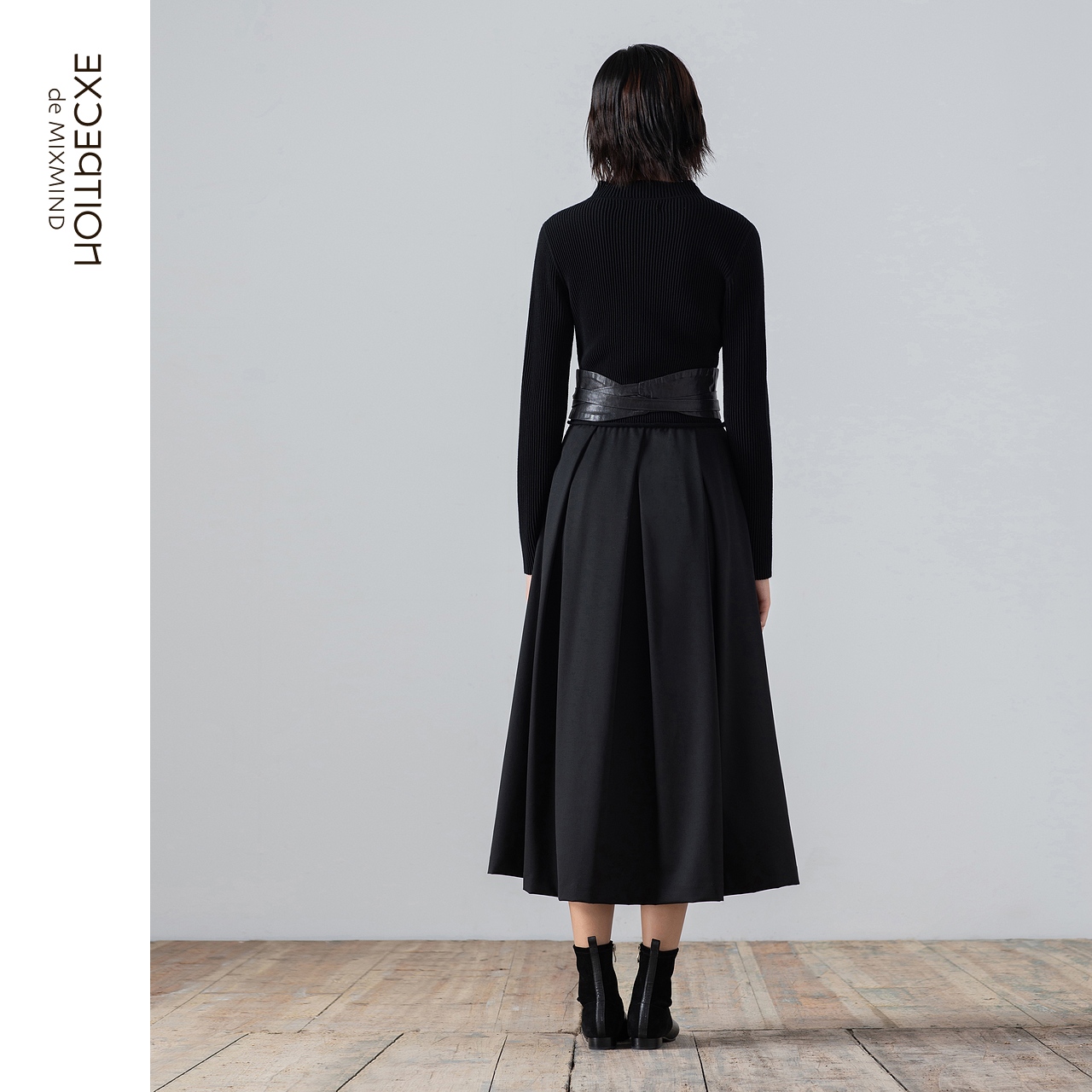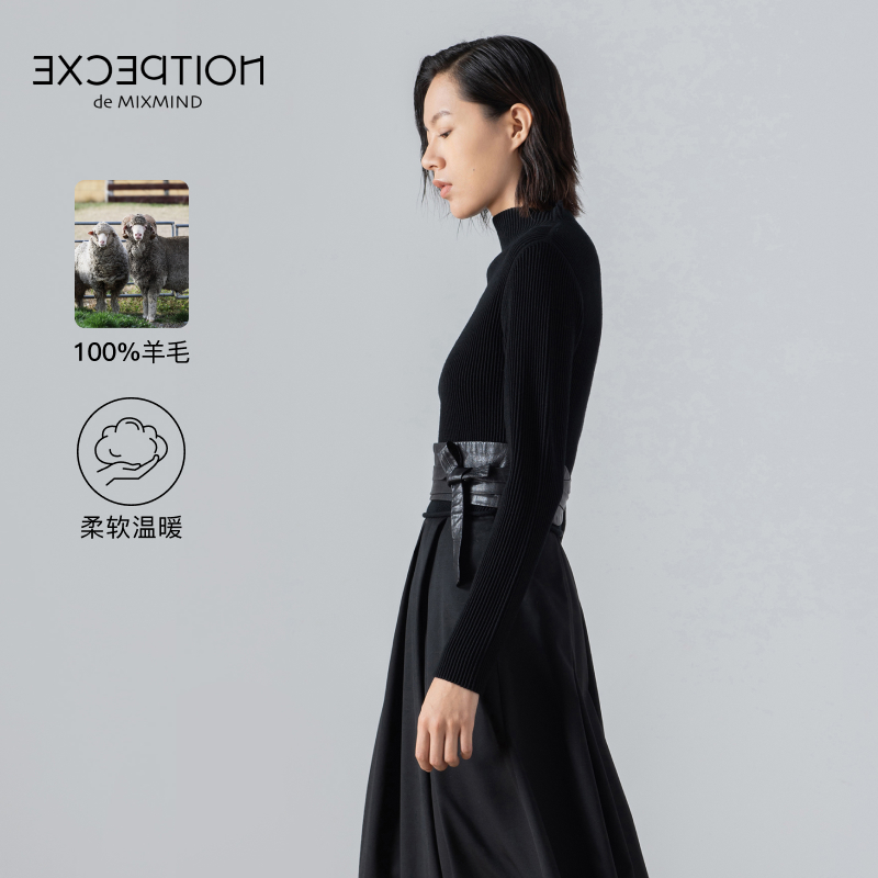 EXCEPTION例外女装春秋款时尚气质修身连衣裙复古优雅中长款A字裙