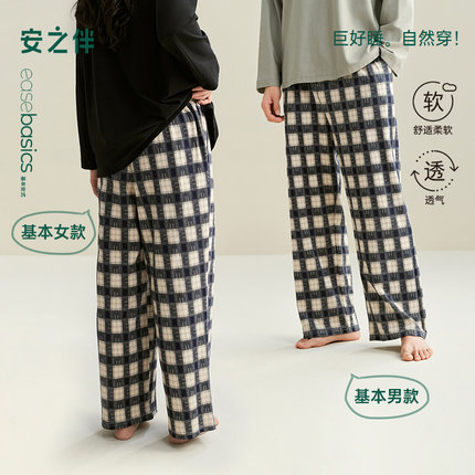 安之伴【巨柔软】情侣睡裤女款春秋季格子单件长裤纯棉男士家居裤