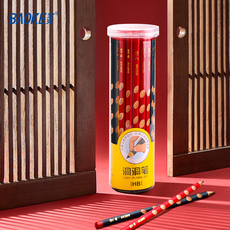 宝克洞洞笔铅笔小学生三角杆2比hb铅笔矫正握姿一年级2b考试铅笔三棱儿童幼儿园练字初学者写字文具用品