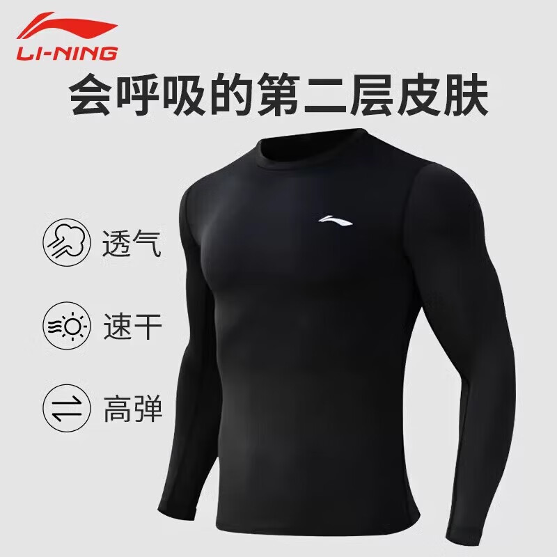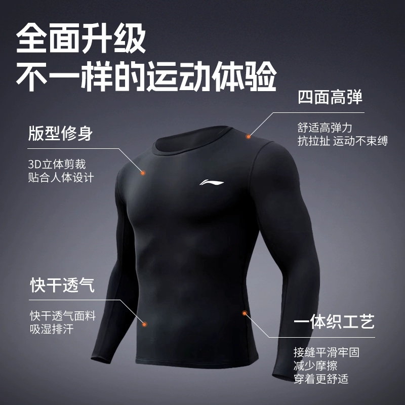 李宁健身衣服男长袖速干衣篮球服打底紧身衣运动套装秋冬跑步训练