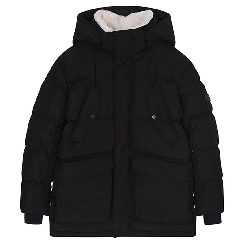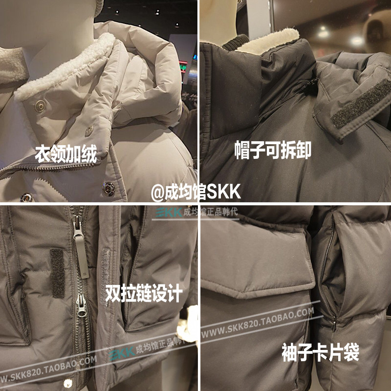 韩国代购TBJ工装羽绒服男女羊羔绒领可拆帽外套大码