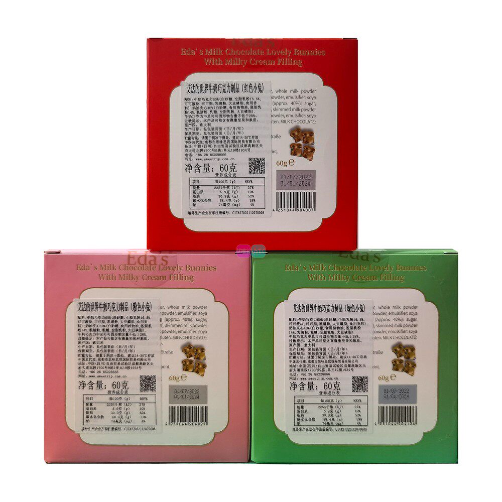 意大利进口零食EDAS艾达的世界小兔子奶油夹心牛奶巧克力盒装60g