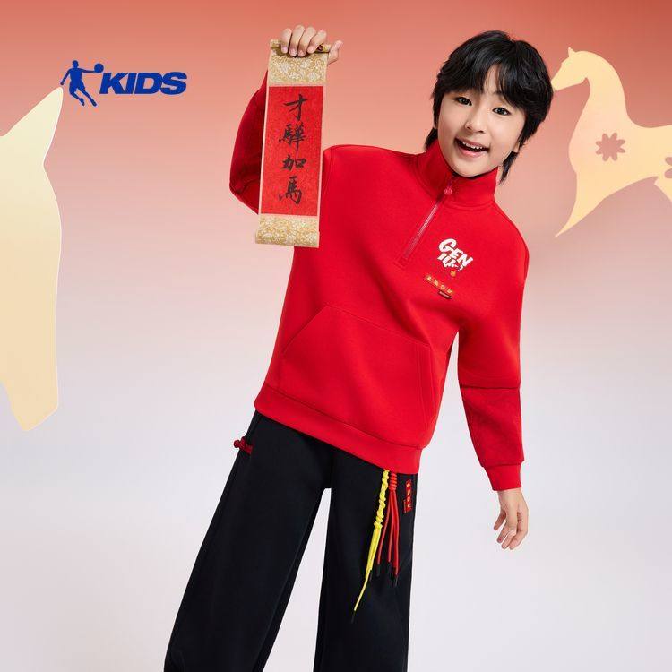 才骅加马乔丹男童新年红色卫衣马年大童本命年拜年服TDDWDA261057
