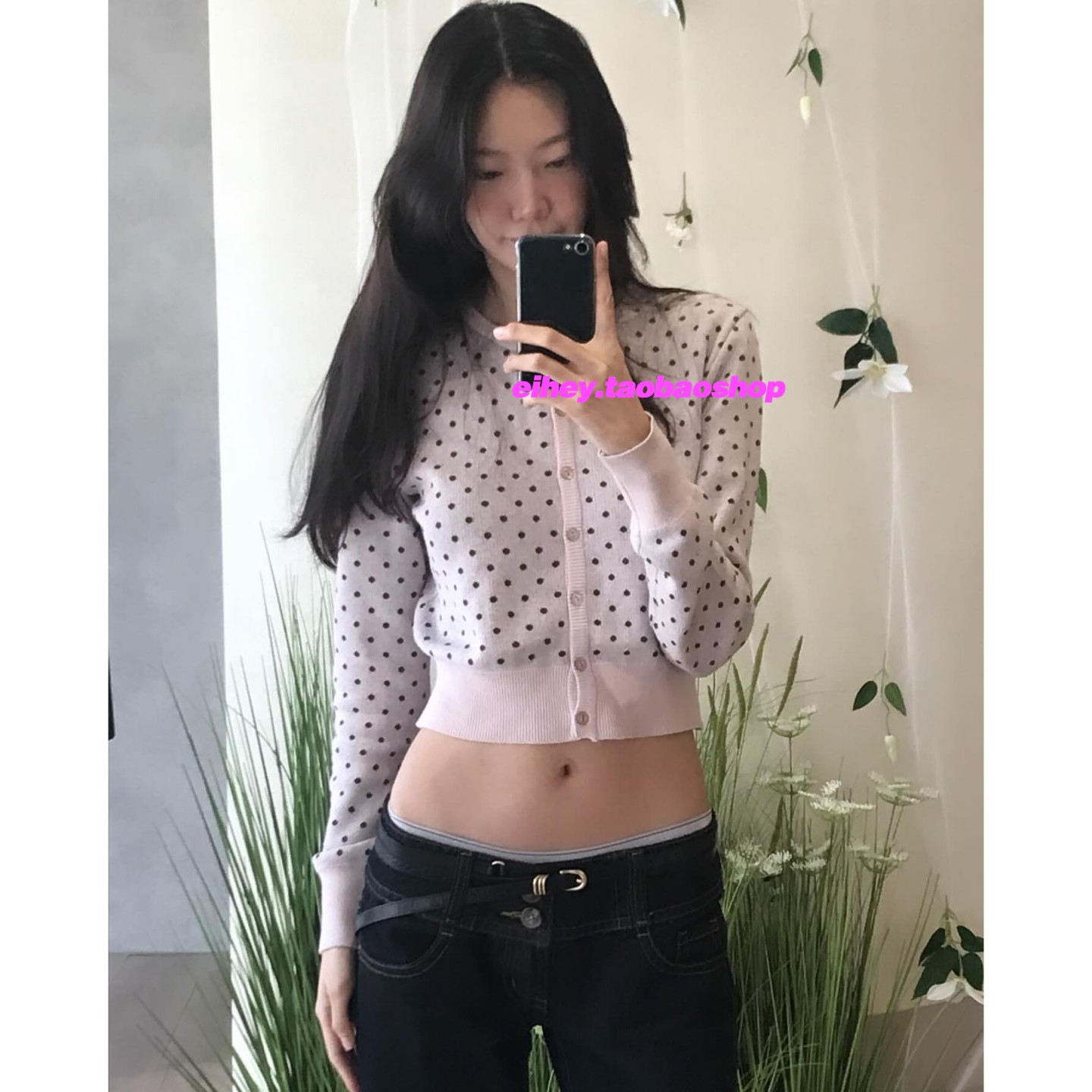 eihey诶嘿早秋新款甜美元气波点针织开衫女修身毛衣显瘦长袖上衣