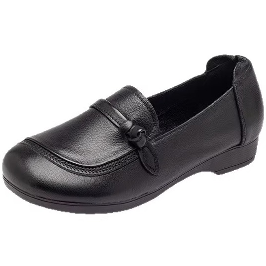 头层牛皮深口复古单鞋牛筋软底真皮女鞋中老年防滑妈妈鞋软皮鞋