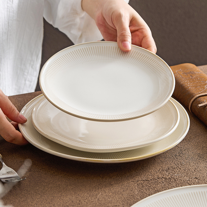 米黄盘子菜盘家用浅盘高级感轻奢陶瓷牛排西餐盘圆盘2025新款摆盘