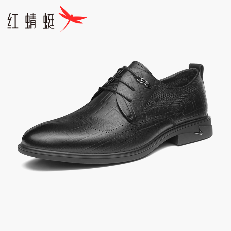 红蜻蜓男鞋春秋新款压纹正装皮鞋男士英伦风商务鞋经典德比鞋婚鞋