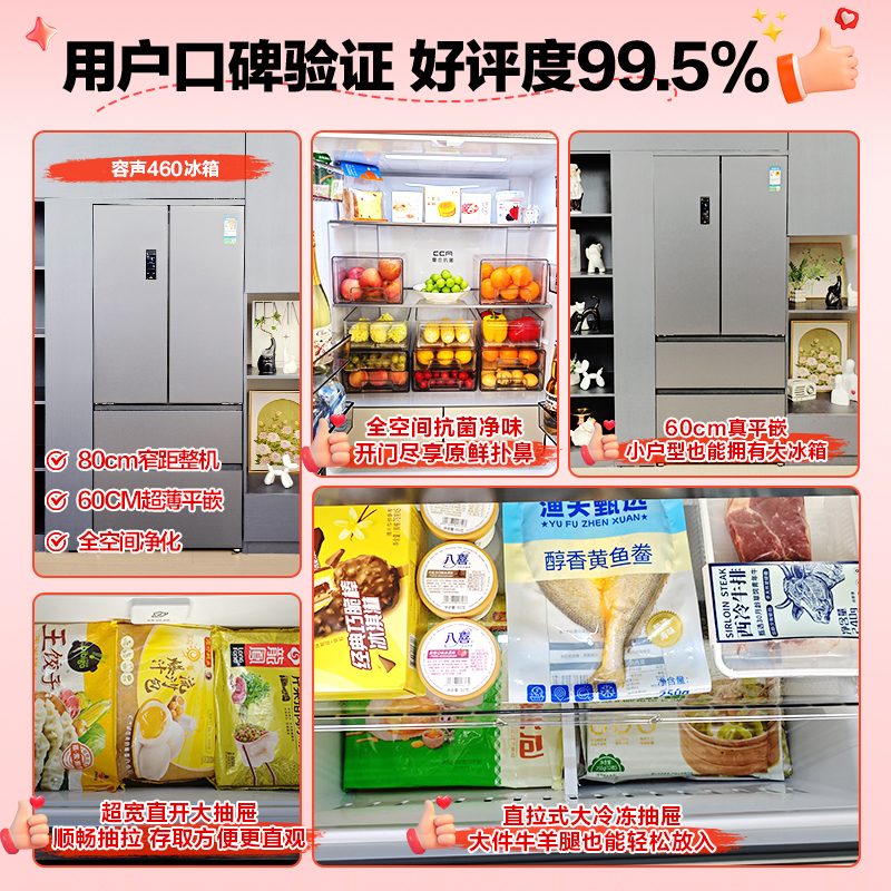 【437升级款】容声460L超薄零嵌入式法式双开四门电冰箱家用风冷