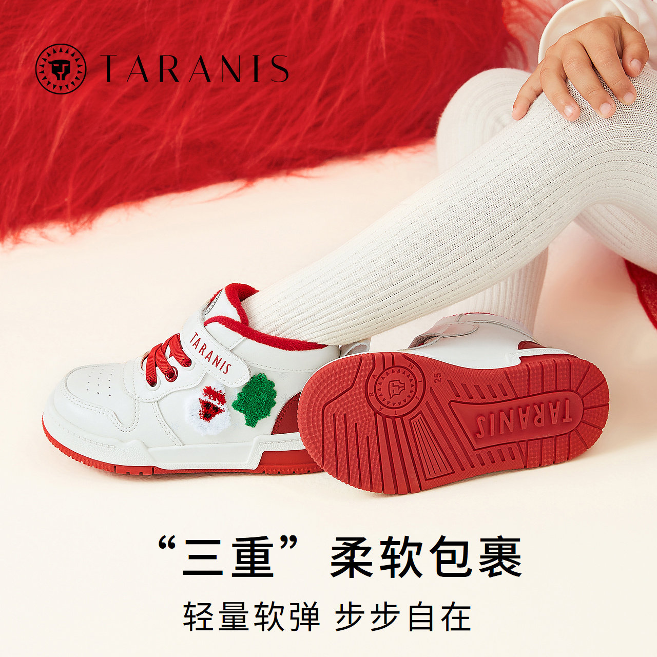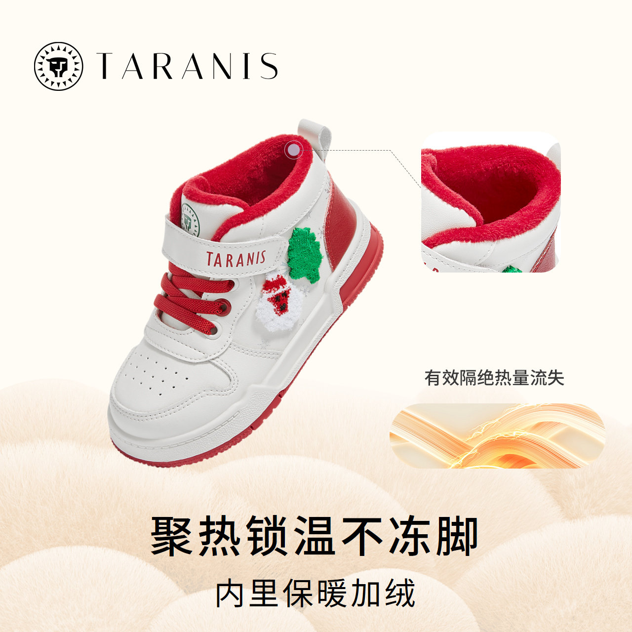 泰兰尼斯童鞋冬季儿童板鞋女童加绒保暖圣诞系列男童运动休闲鞋子