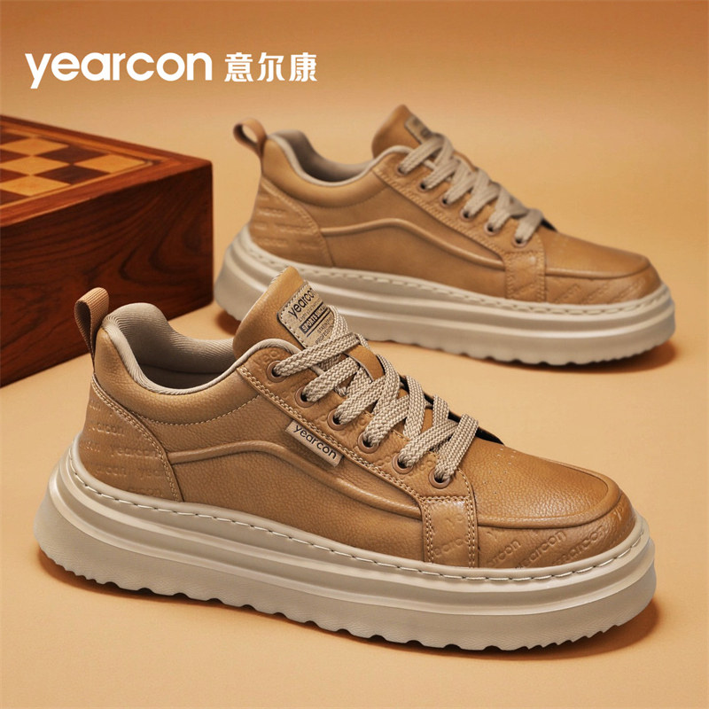 意尔康男鞋2026新款秋冬季厚底增高板鞋男士高级百搭爆款休闲皮鞋