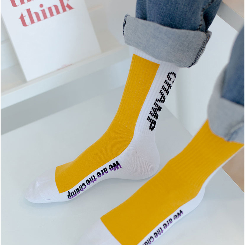 韩国进口字母拼色嘻哈风滑板袜
