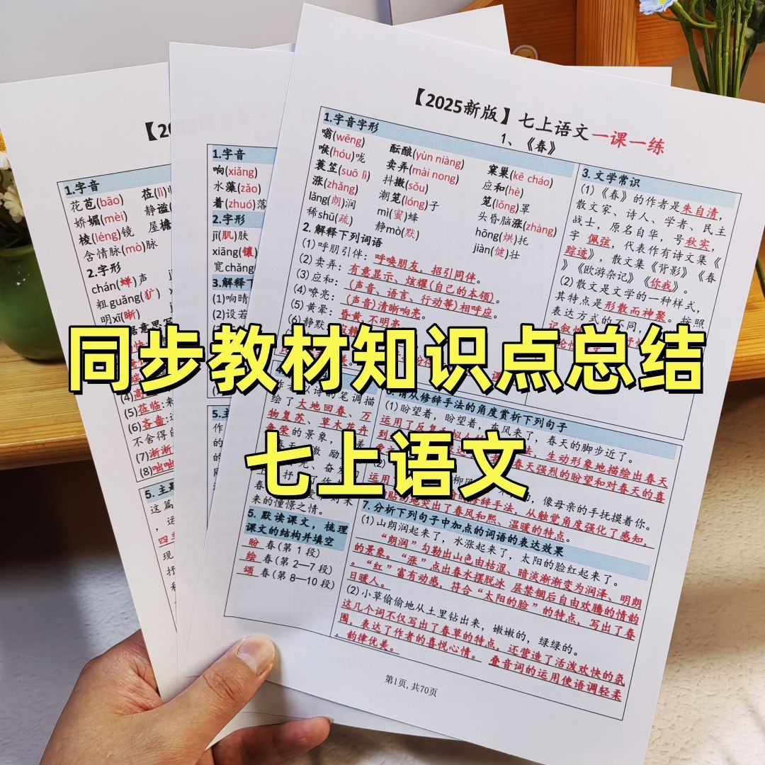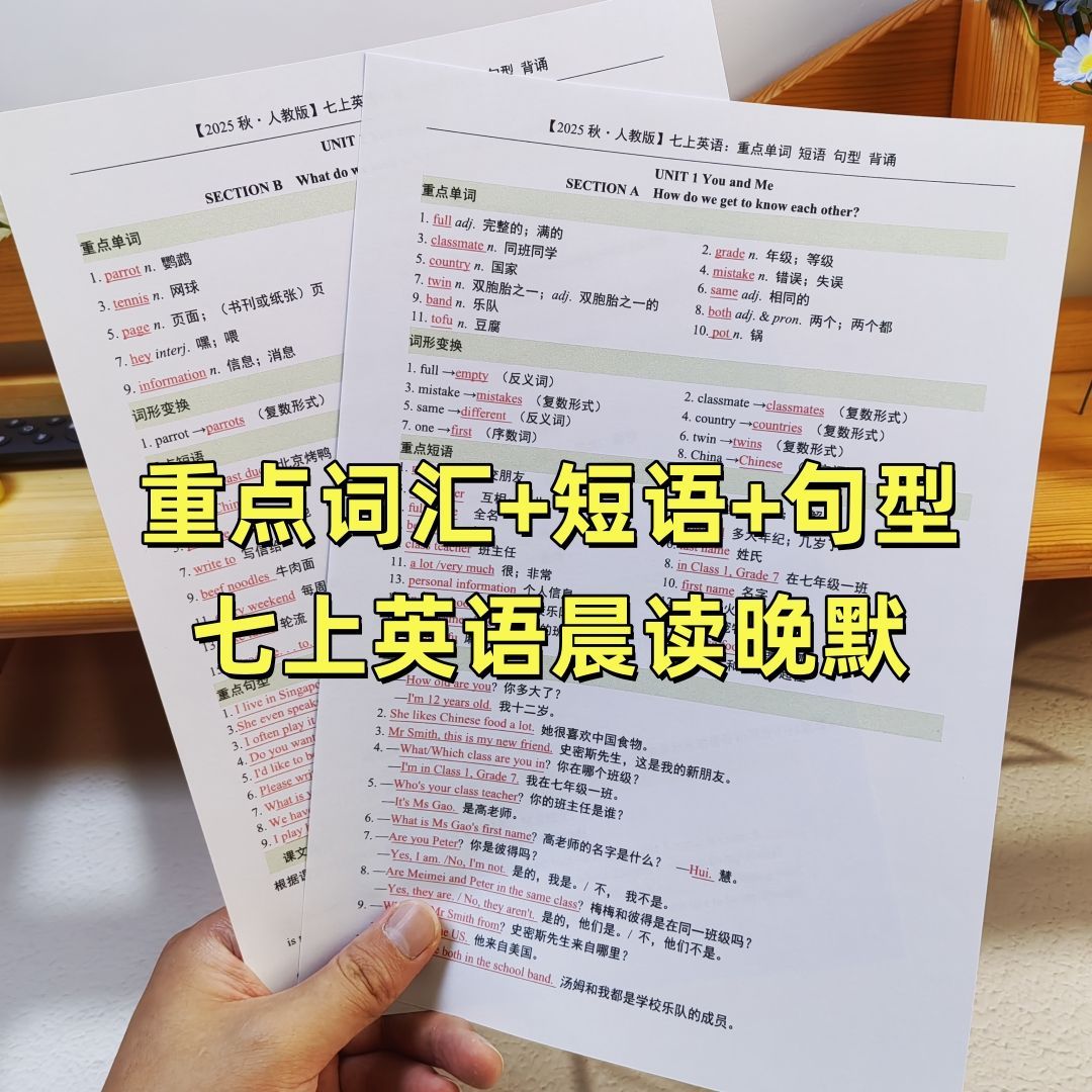 2025秋季新版七年级上册语文数学英语晨读晚默名著必背知识点汇总