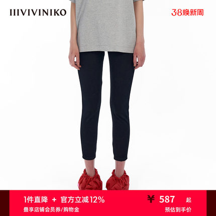 IIIVIVINIKO秋季新款休闲9分弹力通勤紧身牛仔裤子女C331819214A