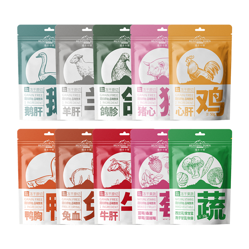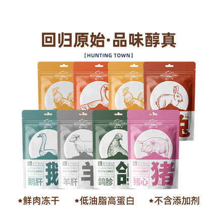 渔夫牧场联名猎食小镇冻干幼猫狗零食猪心鸡心肝鸽胗牛肝水果蔬菜