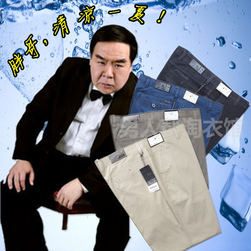 高弹力薄款加肥加大码男裤 高腰深裆宽松肥佬长裤 中老年休闲裤子