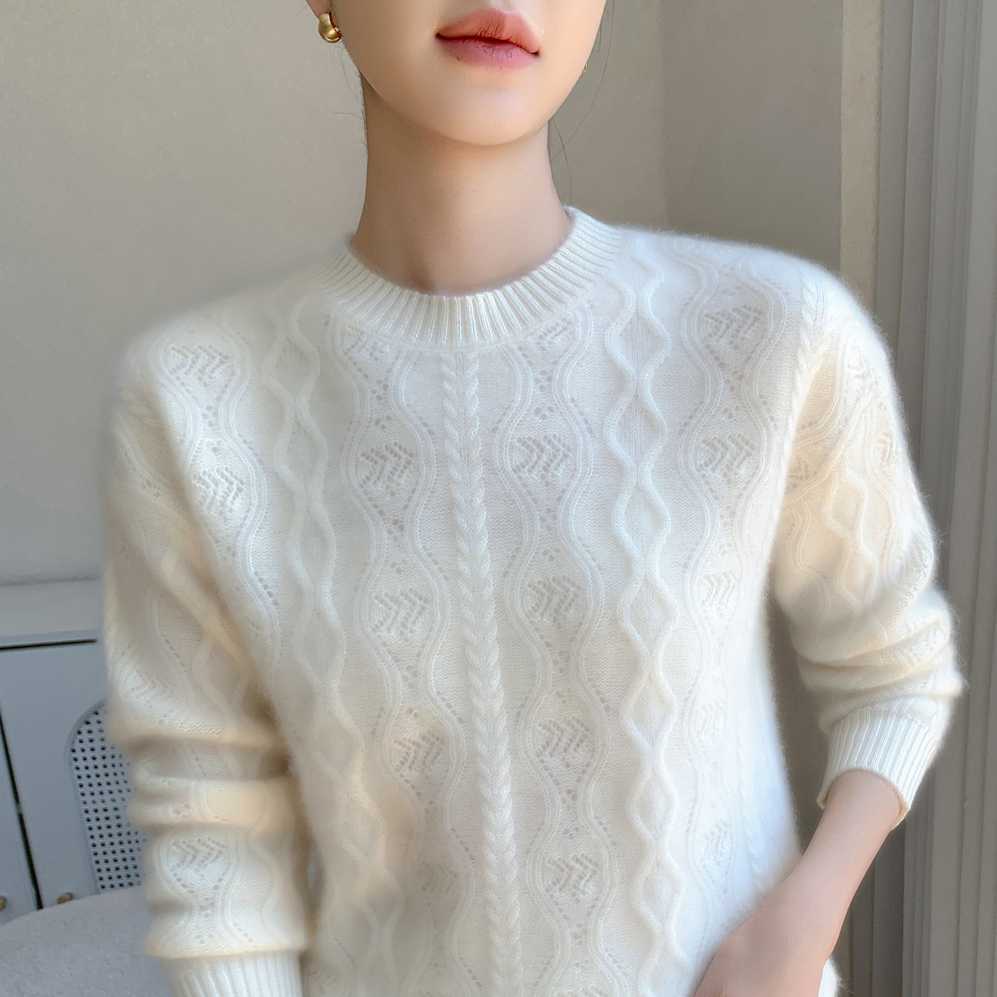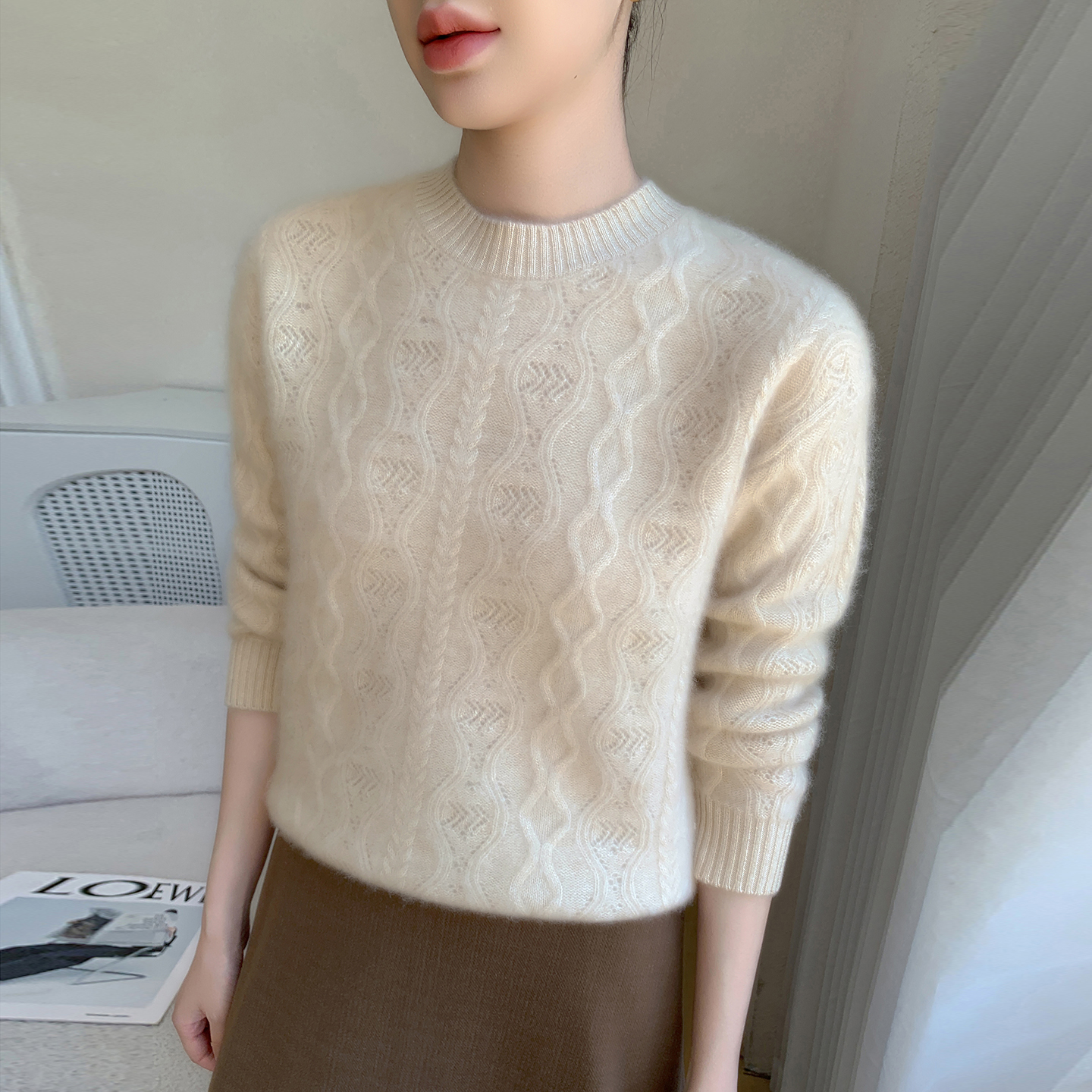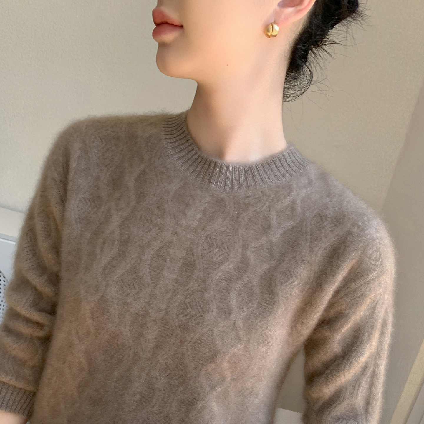 2025秋冬山羊绒衫女圆领加厚菱形提花针织毛衣宽松慵懒羊毛衫打底