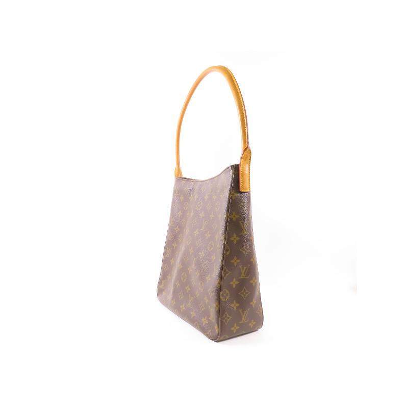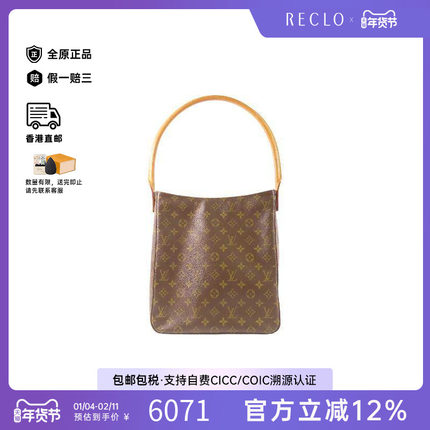 中古LV路易威登女包B级9新Looping名媛涂层/防水帆布单肩包棕色HK