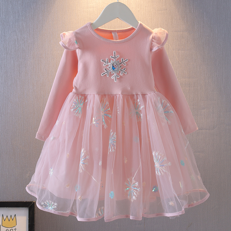 女童秋装爱莎公主裙冰雪童装儿童洋气春秋蓬蓬连衣裙子生日礼服裙