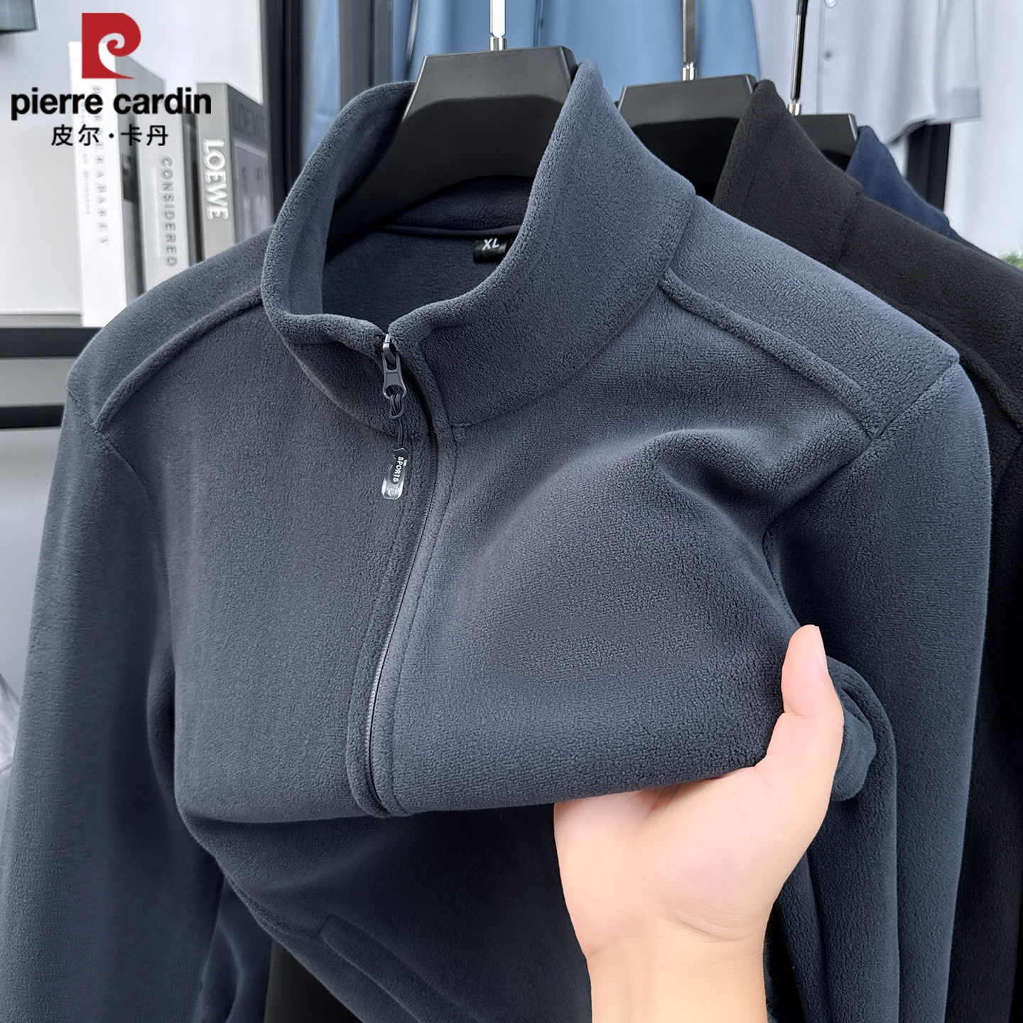 皮尔卡丹秋冬款奥粒绒加厚保暖夹克男外套立领双面摇粒绒休闲开衫