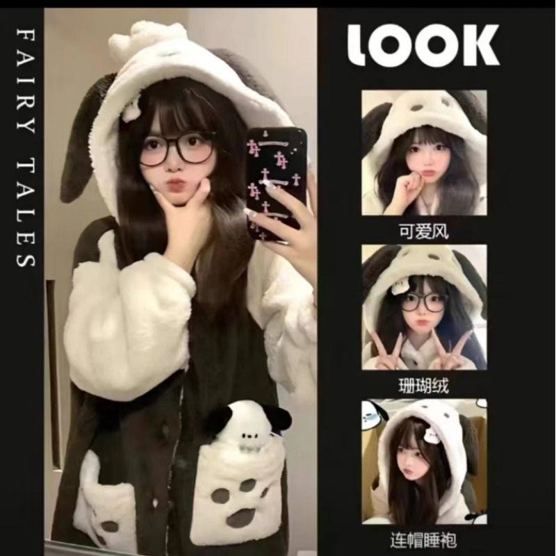 珊瑚绒睡衣冬季女秋冬长款草莓熊玉桂狗睡袍2025新款学生加绒加厚