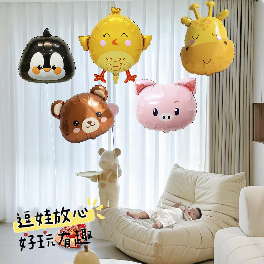卡通动物造型氦气飘空气球男孩女孩生日派对装饰宝宝满月周岁布置