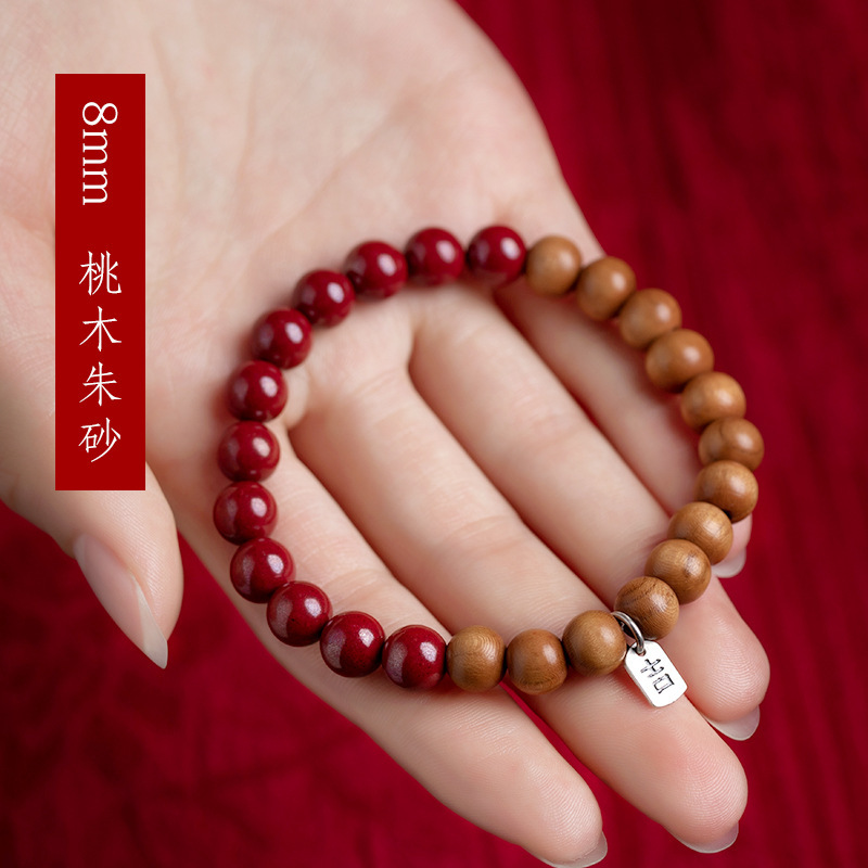 【杭州灵隐】天然老桃木莲花朱砂手串正品手链女本命年转运珠佛珠