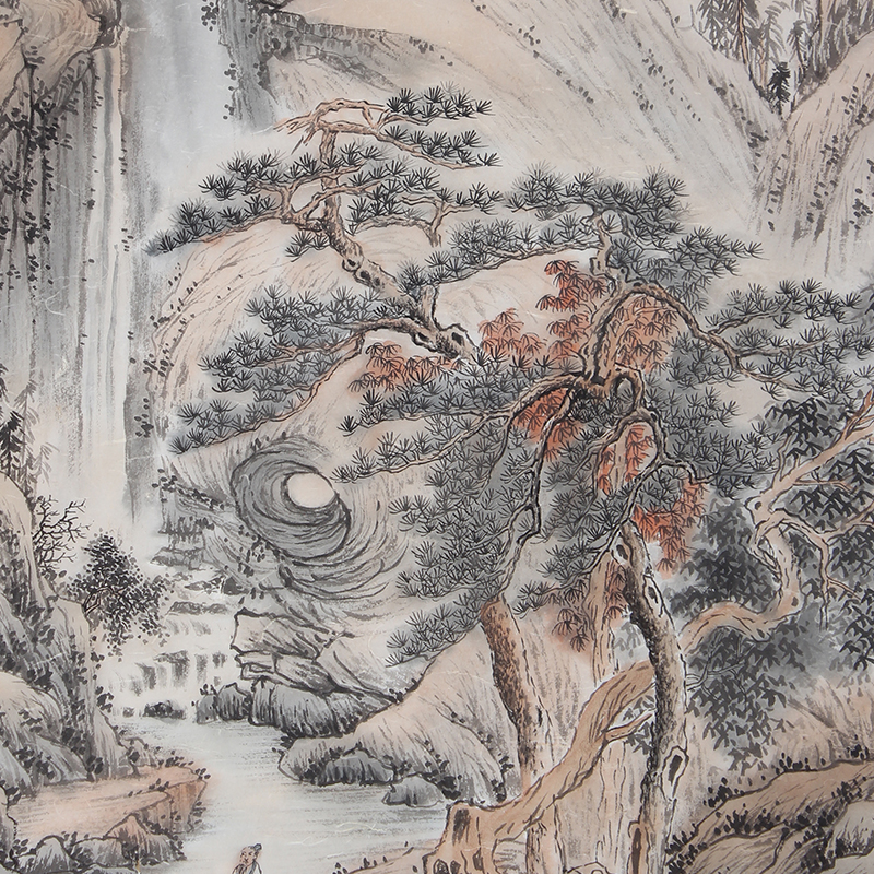 新中式水墨禅意松山高远办公室客厅名家精品纯手绘山水装饰画挂画